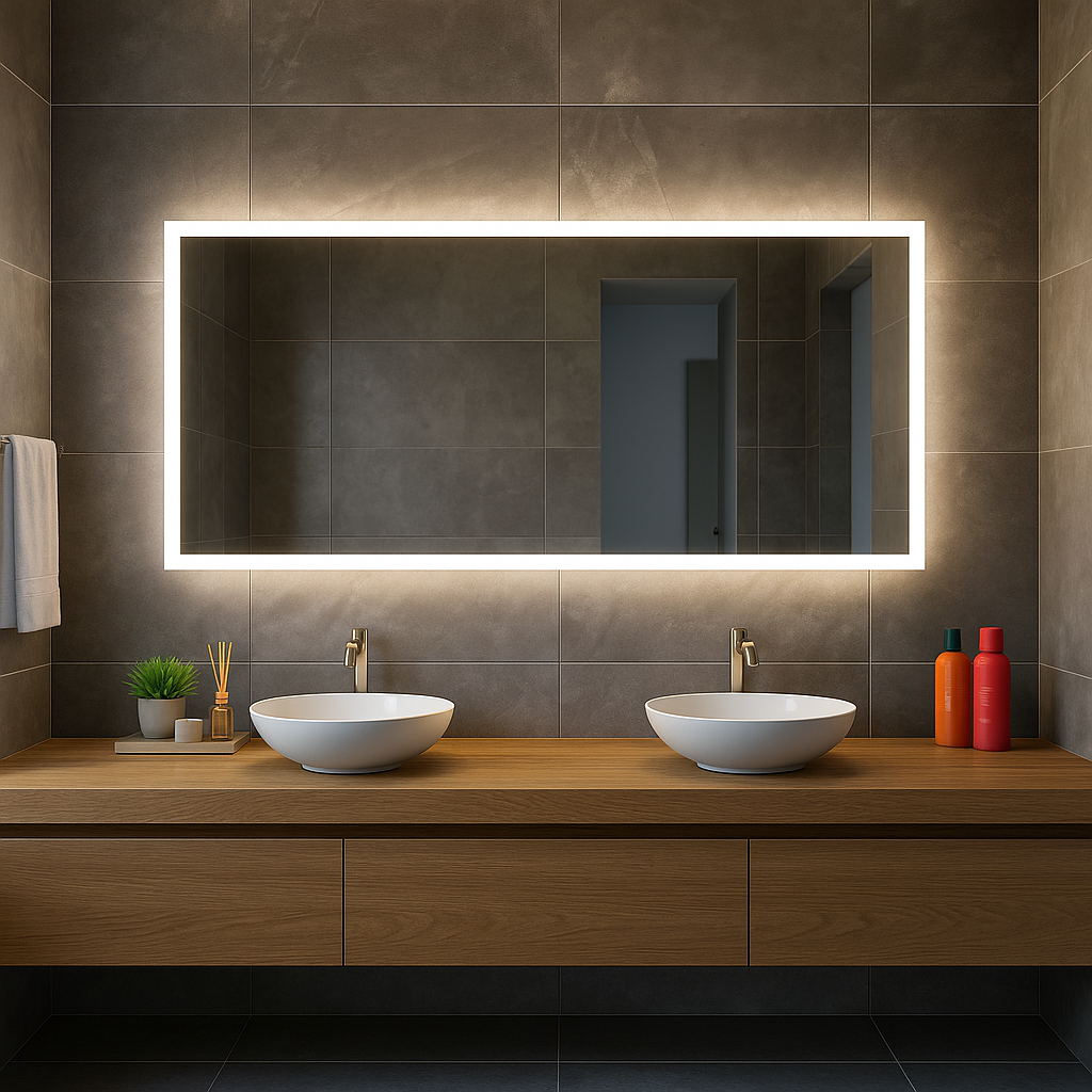 LED-spejle fra Nordic Bad tilbyder en perfekt kombination af stil og funktionalitet til badeværelset. Med integreret front- og baggrundsbelysning skaber de en lysende og dekorativ effekt. Anti-damp funktionen sikrer klart spejl under badet, og en høj farvegengivelse (Ra>95) giver en autentisk spejlbilledoplevelse. Med en forventet levetid på op til 50.000 timer og IP44-certificering er spejlene holdbare og velegnede til badeværelser. Deres stilfulde design med skjult ophæng og anti-korrosionsbelægning gør dem til et ideelt valg for enhver, der ønsker at forbedre deres badeværelses atmosfære.