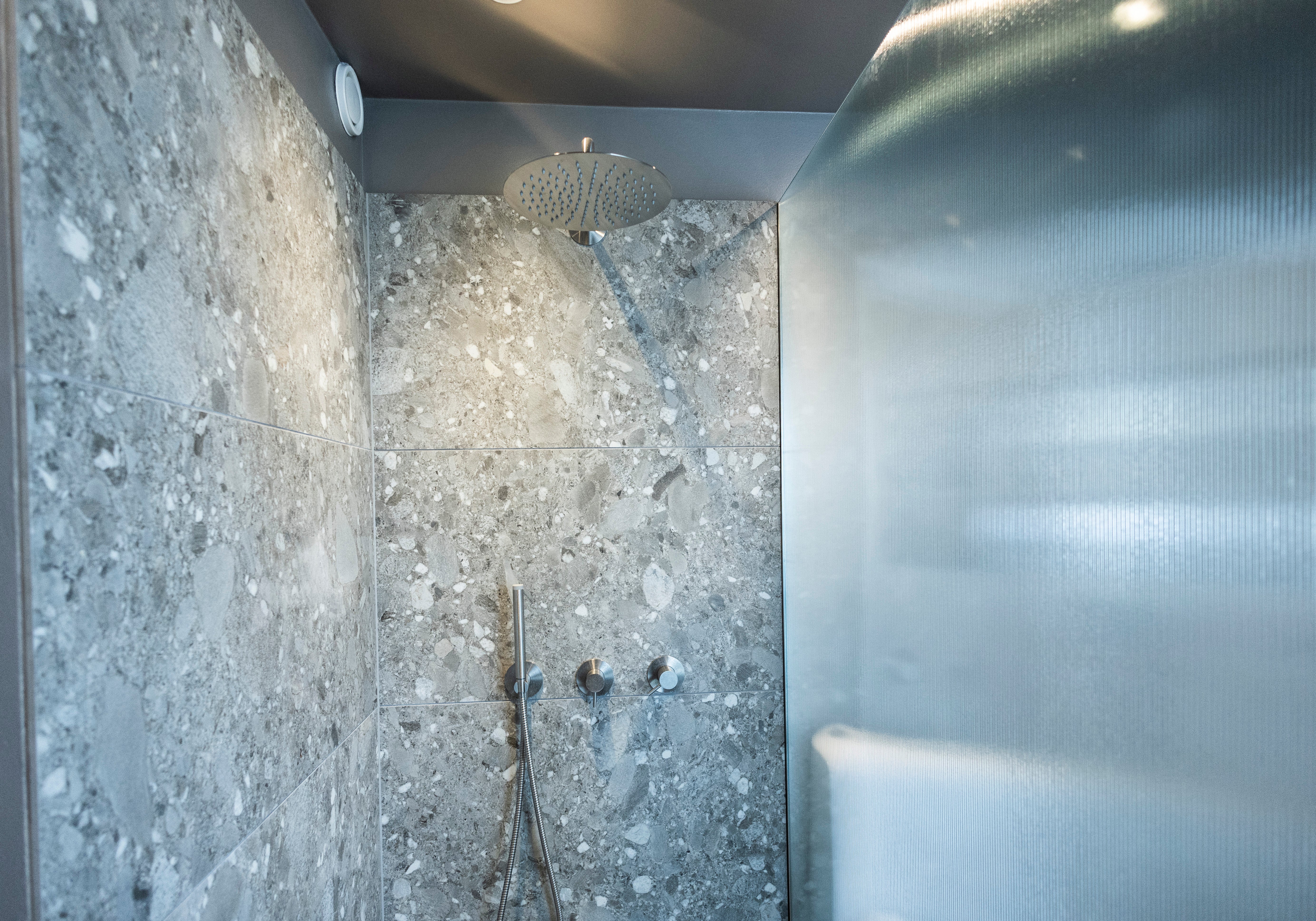Efter monteringen af en brusevæg ændrer badeværelset sig markant. Væggen fungerer som en barriere og forhindrer vandet i at sprede sig uden for bruseområdet.