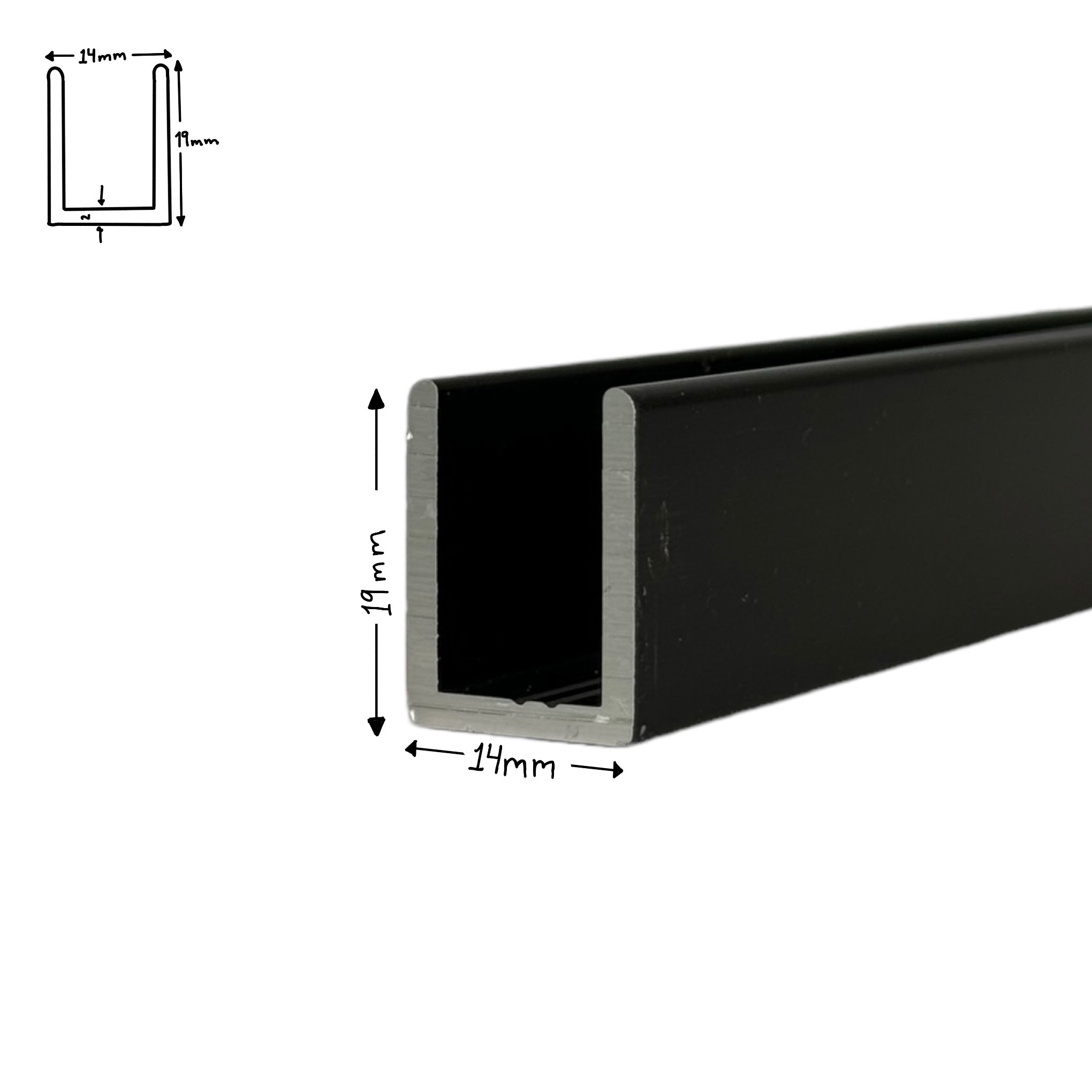 Tykkelsen på profilen måler 2mm.